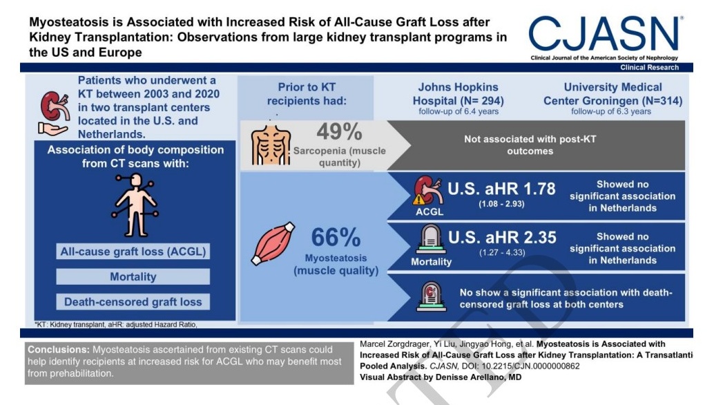 Association of Myosteatosis and of Graft Loss after Kidney Transplantation: An International Observational Study.