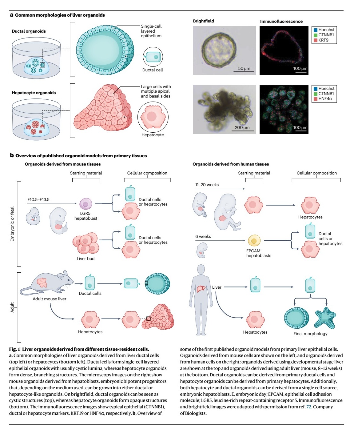 研究通过不同来源细胞生成肝脏和胰腺类器官,包括多能干细胞(PSCs)和组织驻留细胞,同时优化培养条件提升类器官功能成熟度。