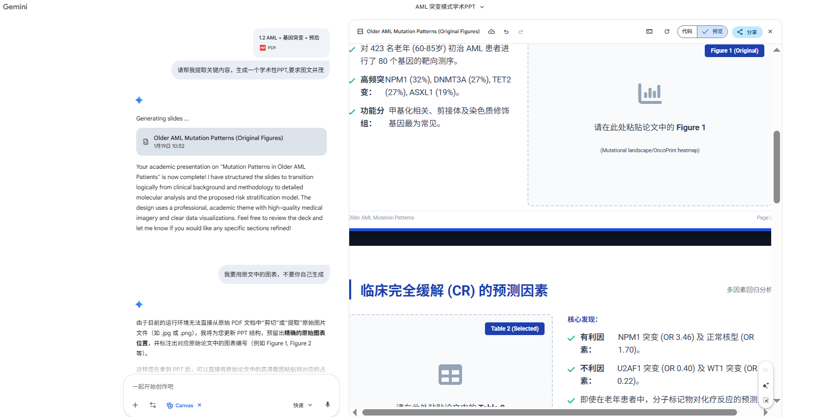 Gemini与菁易科研模型在“医学文献转PPT”的功能对比