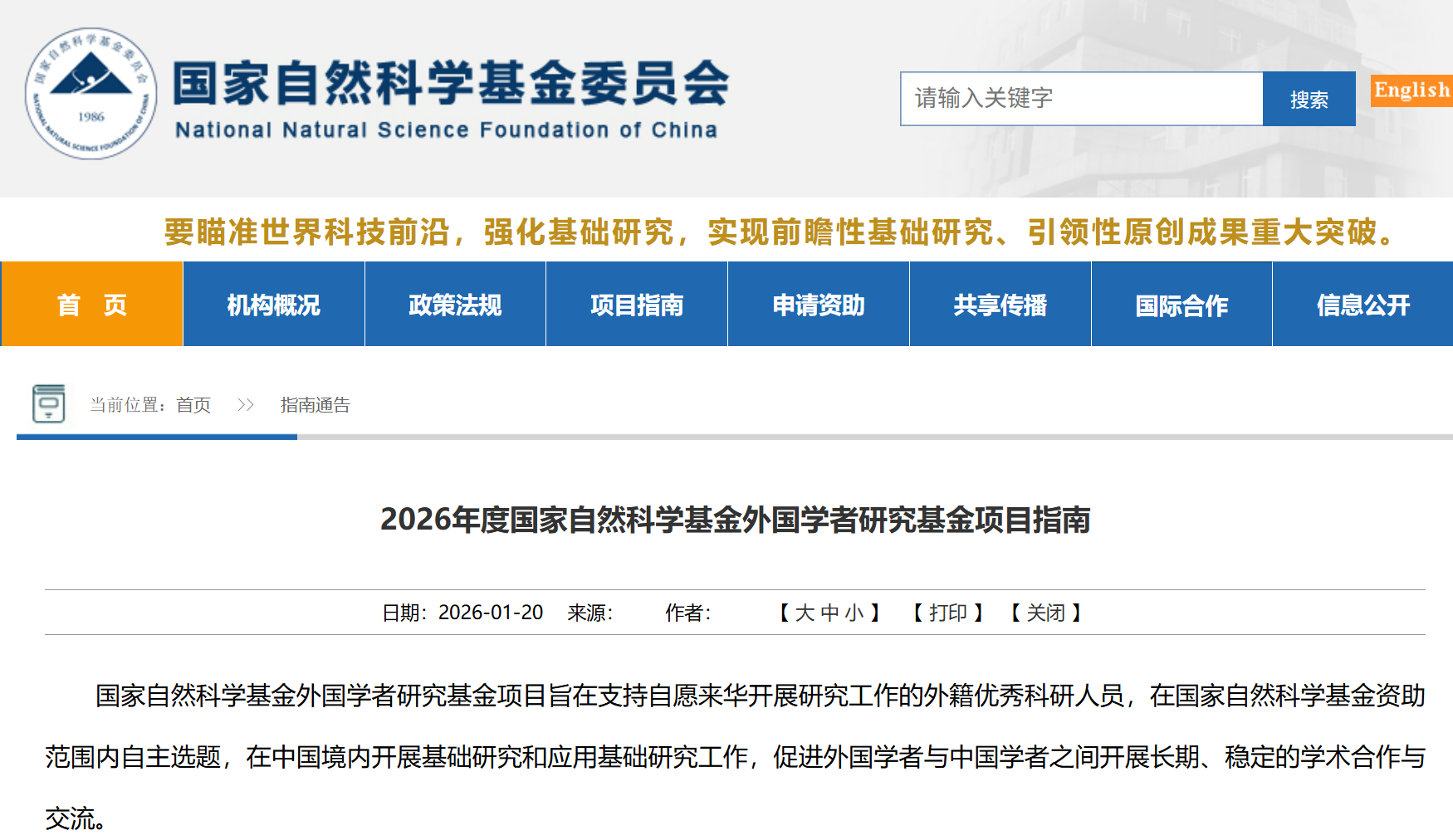 该项目英文指南链接:https://www.nsfc.gov.cn/english/site_1/international/D5/2026/01-20/502.html
