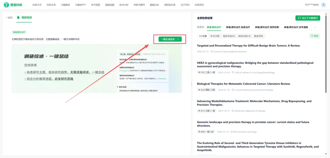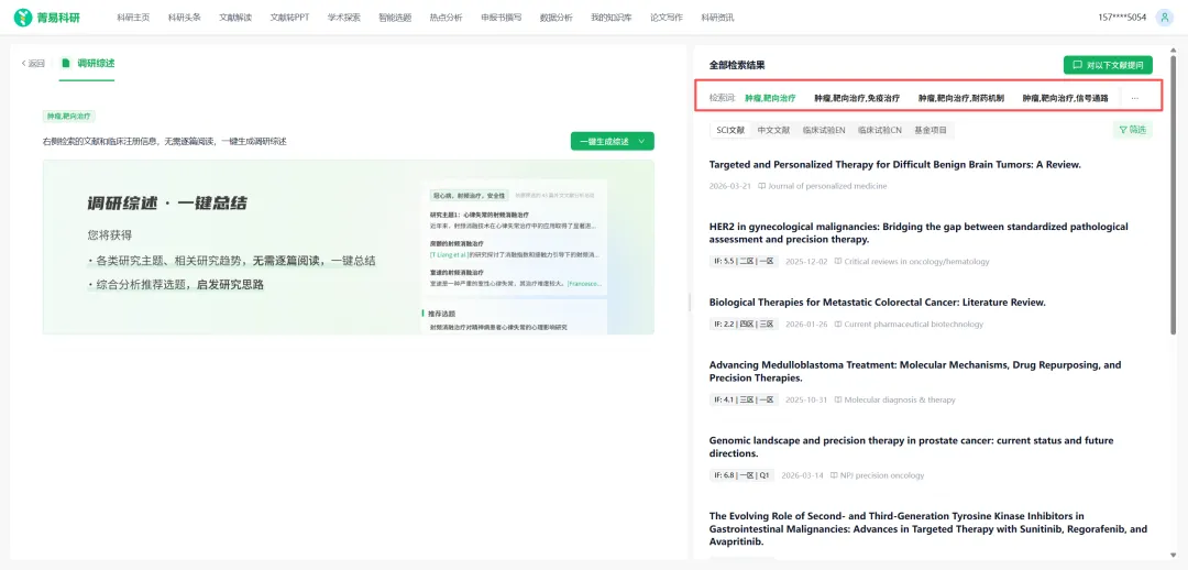 通过一键生成综述,不用再一篇一篇读与一段一段摘录文献,菁易科研自动检索相关文献,生成该方向的研究热点、发展趋势与代表性成果概览。