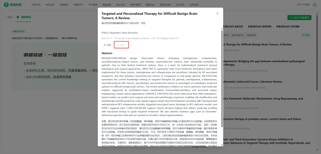 点击“翻译”按钮,即可查看对照翻译,帮您把时间用在理解文献上,而不是查单词上。